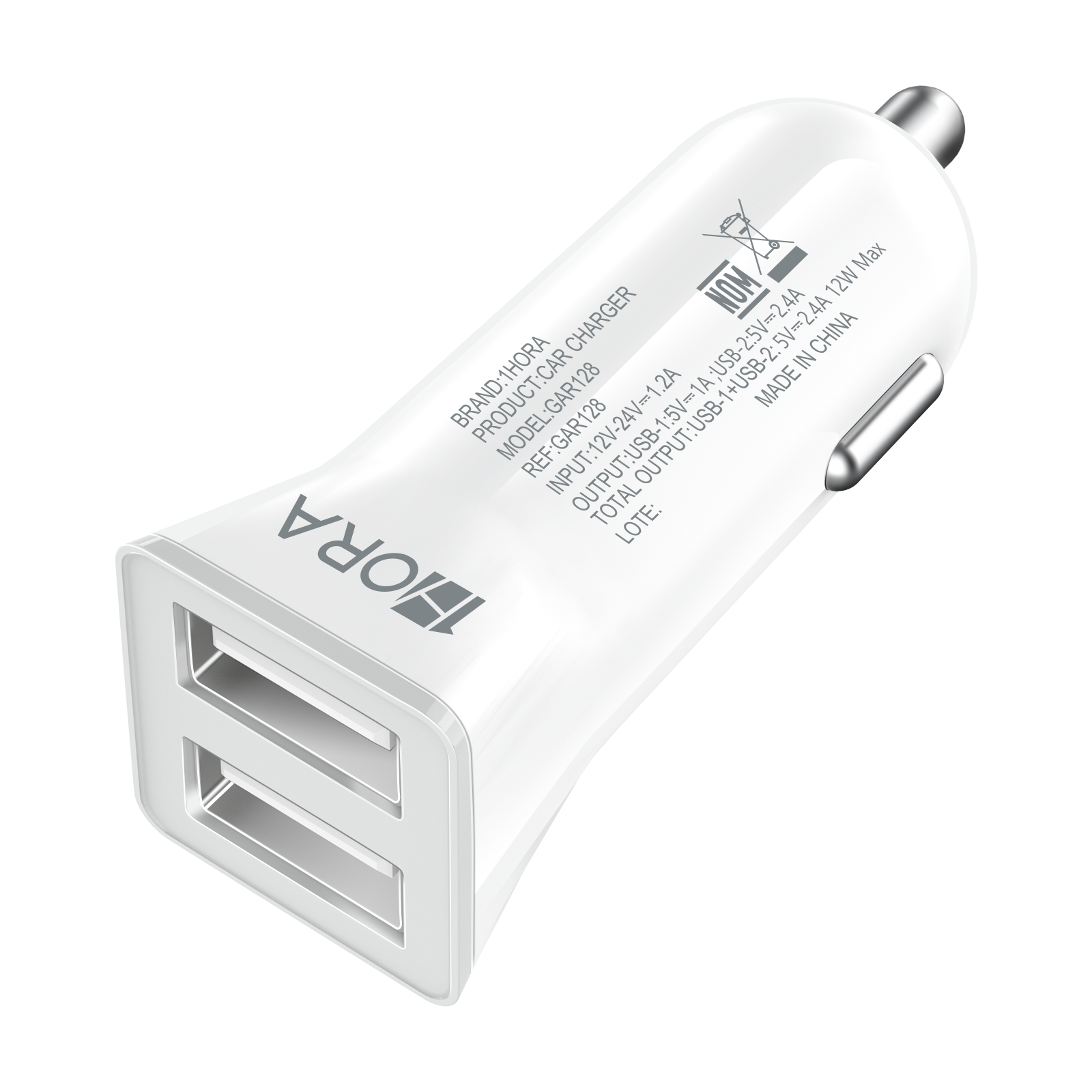 Carregador Veicular 2.4A Portas USB A Branco 1HORA